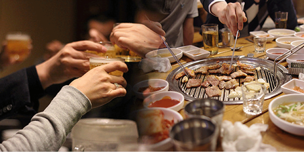 Ở Hàn Quốc, giờ ăn trưa được coi là quan trọng đối với nhân viên văn phòng. Họ thường tụ tập ăn chung với đồng nghiệp, thậm chí, bữa ăn kéo dài hơn 2 tiếng đồng hồ tại những quán ăn đông đúc. Việc giao tiếp với đồng nghiệp và làm quen trong bữa ăn là điều cần thiết với họ. Ăn trưa xong, họ sẽ đến quán cà phê uống tại đó hoặc mua mang đi.